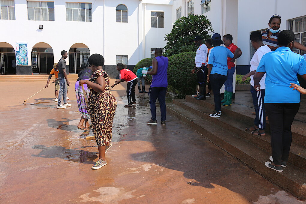Umuyobozi w’ibitaro Dr. Gahima John yasabye abitabiriye kurushaho kwimakaza isuku nk'inkingi y'ubuzima bwiza na cyane ko ibitaro bitanga serivisi z'ubuzima.