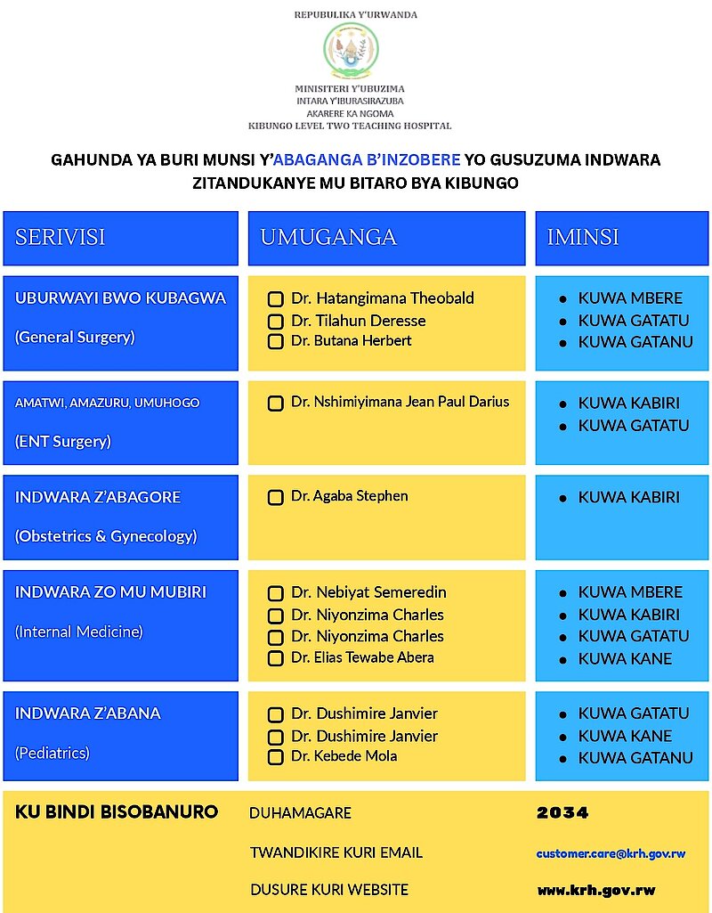 Ingengabihe igaragaza iminsi abaganga b’inzobere basuzumiraho indwara zitandukanye