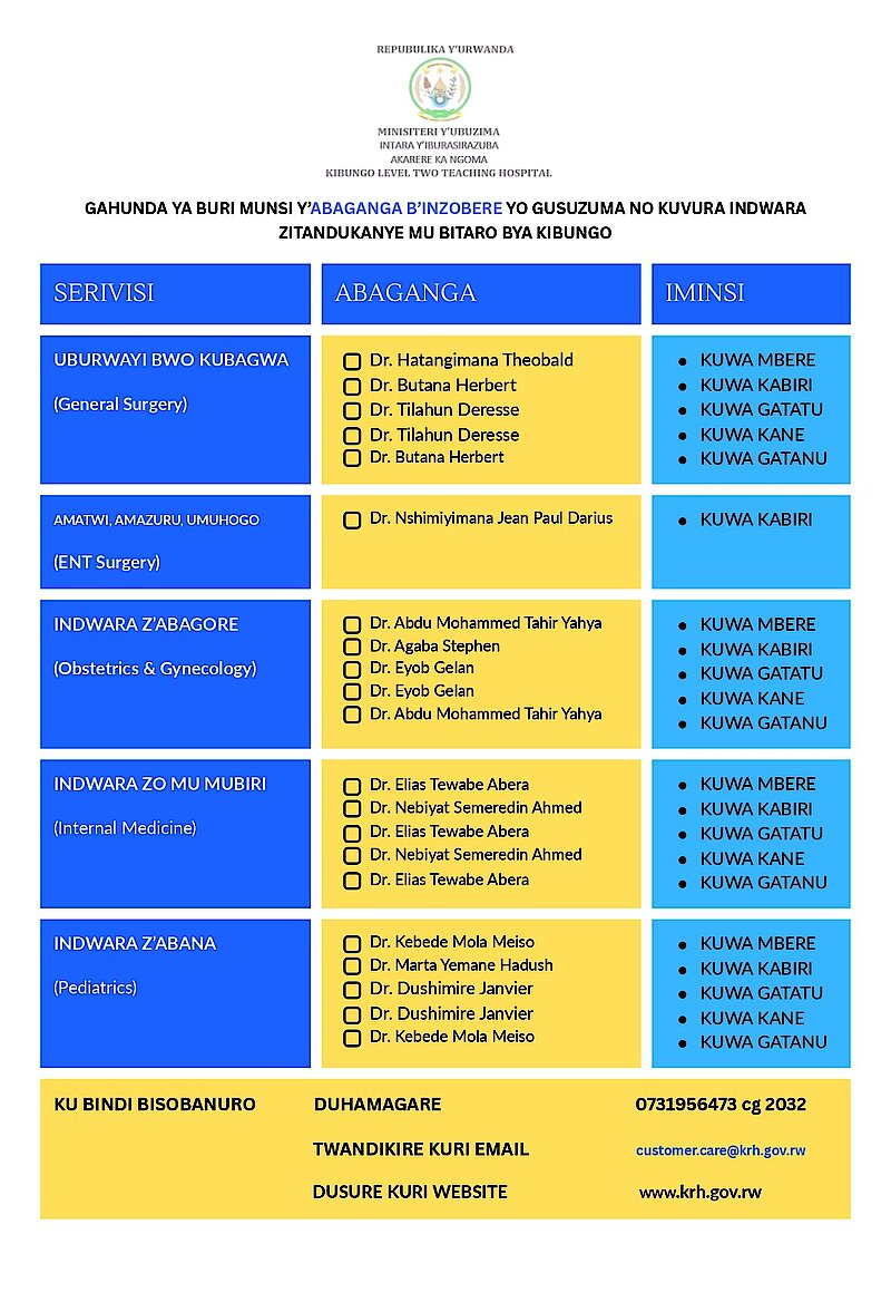 Ingengabihe ivuguruye igaragaza iminsi abaganga b’inzobere basuzumiraho indwara zitandukanye